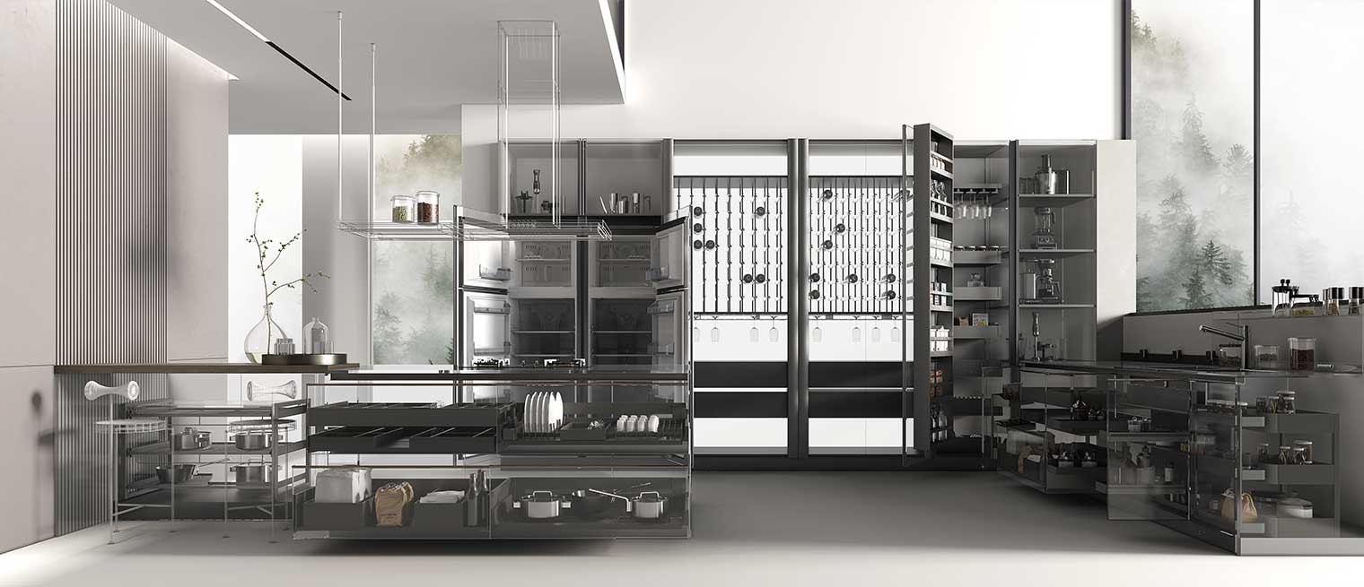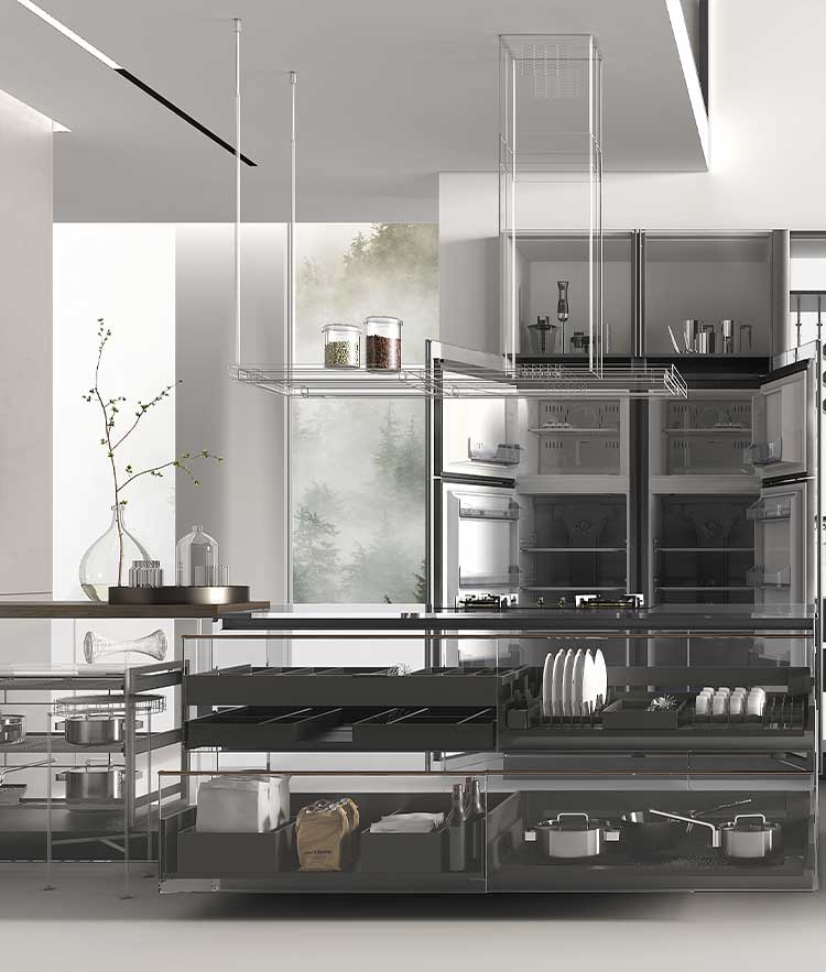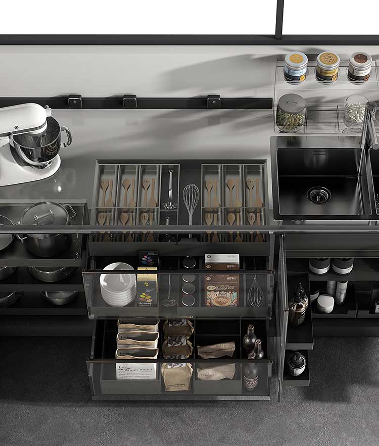 以人性化方式布局,可收纳大部分日常使用锅具,完美解决烹饪工具太多,无处安放问题,隐藏式收纳,使用更美观。