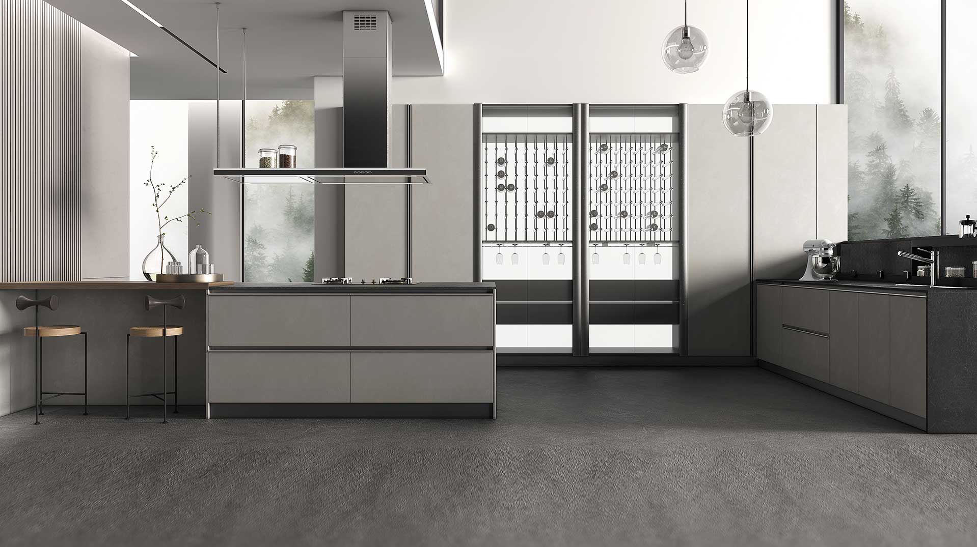 木质吧台与厨房岛台融合的巧妙设计,把自娱自乐的饮食生活在私密的厨房空间里完美实现,整体设计视野开阔,格局通透流畅。